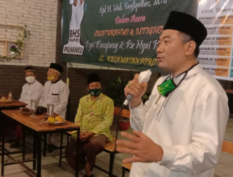 “Hari Jum’at yang berkah ini, para kyai dan bu nyai kampung se Kecamatan Porong, siap memenangkan Pasangan calon BHS-Taufiq. Kesanggupan ini diberikan dengan penuh keyakinan,” ujar H Suyanto.