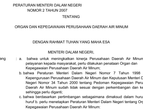 SIDOARJO (kabarsidoarjo.com)- Keputusan Bupati Sidoarjo H.Muhdlor Ali memilih empat direksi PDAM yang baru sesuai dengan surat pengumumam tertanggal 21 Mei 2021 kemarin, disinyalir menabrak peraturan menteri dalam Negeri Pasal 1 angka 1 Peraturan Menteri Dalam Negeri Nomor 2 Tahun 2007 tentang Organ Dan Kepegawaian Perusahaan Daerah Air Minum.