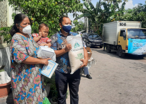 Bantuan bahan pangan dan kebutuhan kesehatan tersebut antara lain beras, minyak goreng, sabun mandi dan masker medis.