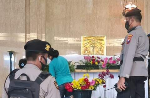 Sterilisasi gereja sebagai tempat Misa Natal oleh tim Jibom Satuan Brimob Polda Jatim, dilakukan mulai dari pintu masuk gereja, taman di sekitar gereja, hingga bagian dalam sampai altar.