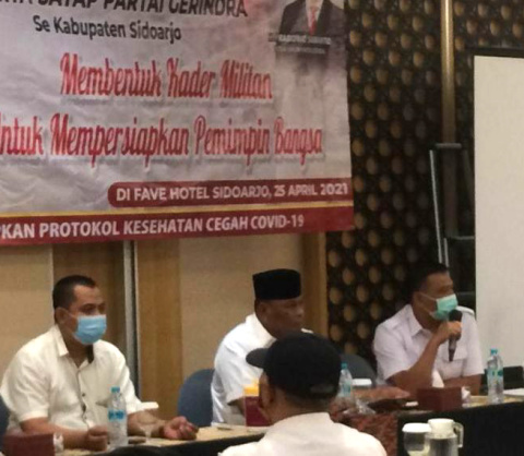 SIDOARJO (kabarsidoarjo.com)- Sebagai upaya menguatkan soliditas internal partai, DPC Partai Gerindra Kabupaten Sidoarjo mengelar pendidikan politik dan saresehan yang dihadiri oleh seluruh pengurus DPC dan PAC bersama sayap partai Gerindra, Minggu (25/4/2021) di Fave Hotel.