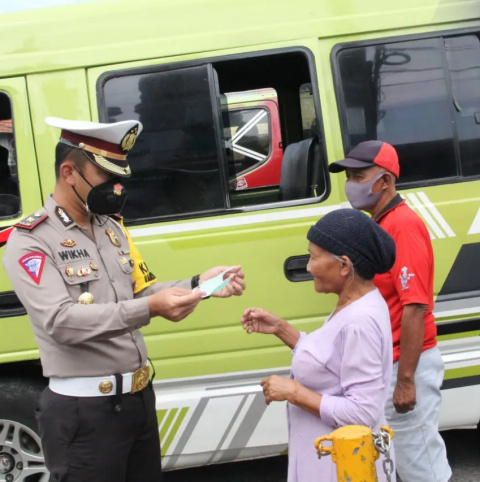 Masyarakat yang ditemukan tidak mematuhi protokol kesehatan dilakukan peneguran dan diberikan masker bagi yang tidak memakai.