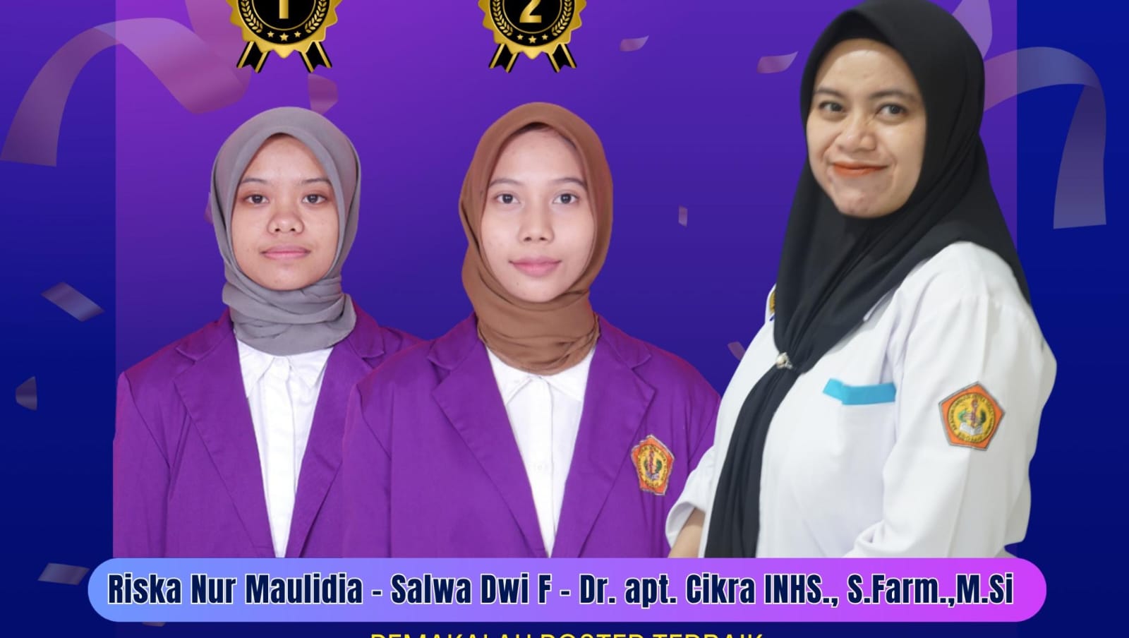 Riska Nur Maulida dan Salwa Dwi F, bersama dosen pembimbing Dr. apt. Cikra INKA, S.Farm., M.Si.